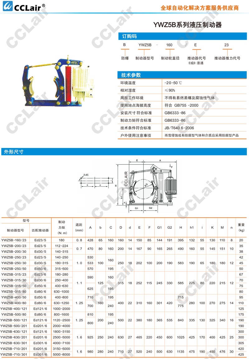 YWZ5B-160,YWZ5B-200,YWZ5B-250,YWZ5B-315,YWZ5B-400,YWZ5B-500,YWZ5B-630,YWZ5B-710,BYWZ5B-710,液壓制動器