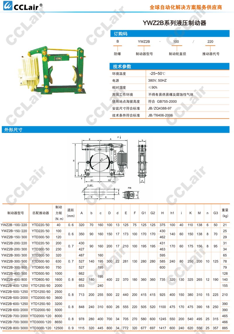 YWZ2B-100,YWZ2B-150,YWZ2B-200,YWZ2B-300,YWZ2B-400,YWZ2B-500,YWZ2B-600,YWZ2B-700,YWZ2B-800,BYWZ2B-500,液壓制動(dòng)器