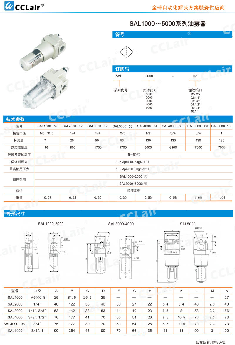 SAL1000-M5,SAL2000-02,SAL3000-02,SAL3000-03,SAL4000-04,SAL4000-06,SAL5000-06,SAL5000-10,油霧器