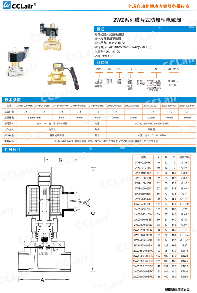 2WZ025-06,2WZ040-08,ZWZ160-10,ZWZ250-25,2WZ320-32,2WZ400-40S,2WZ500-50SF,膜片式常開(kāi)型電磁閥