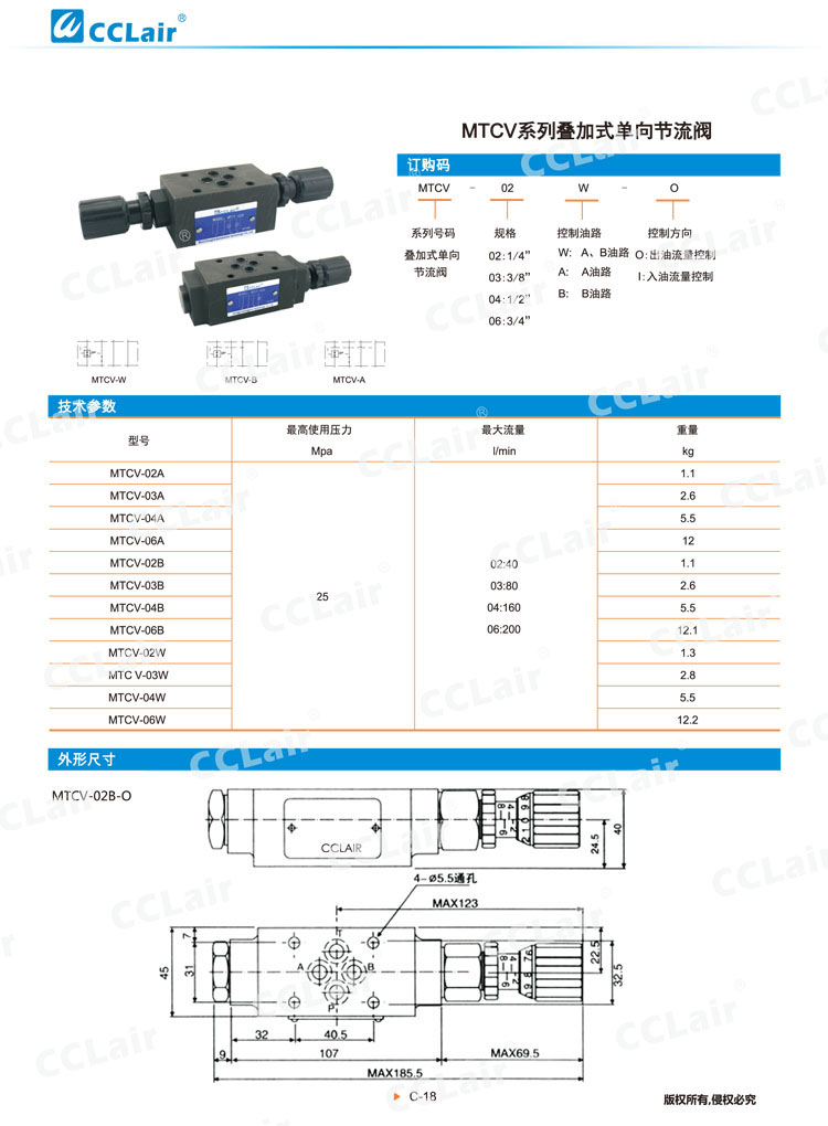MTCV-02,MTCV-03,MTCV-04,MTCV-06,MTCV-02A,MTCV-03B,MTCV-06W,疊加式單向節(jié)流閥