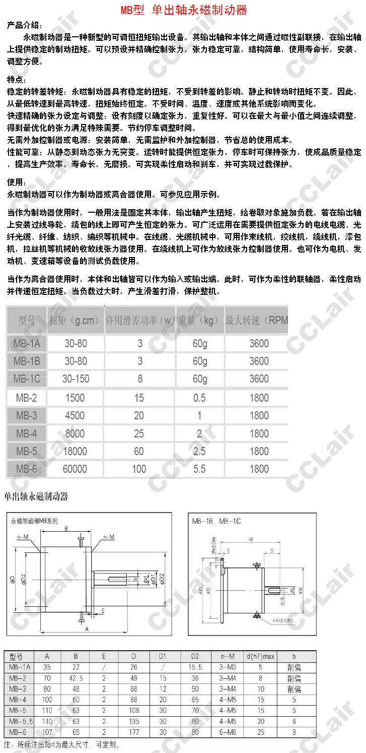 MB-1A,MB-2,MB-3,MB-4,MB-5,MB-5.5,MB-6,單出軸永磁制動器