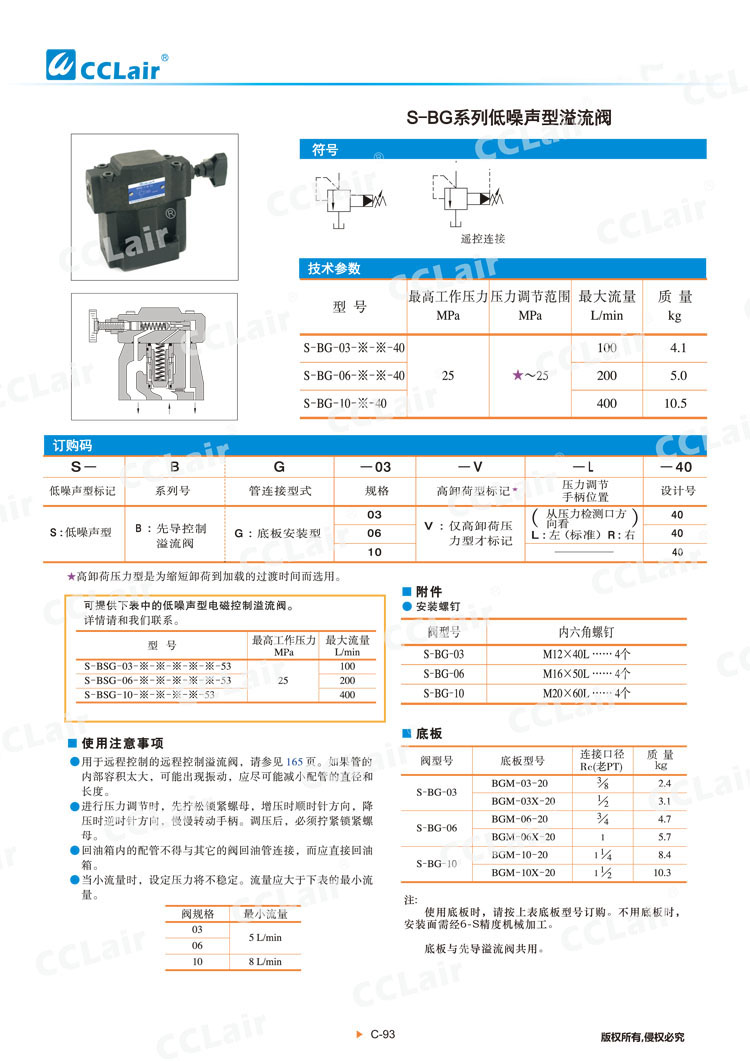 S-BG-03-L-40,S-BG-03-R-40,S-BG-06-L-40,S-BG-06-R-40,S-BG-10-L-40,低噪聲型溢流閥
