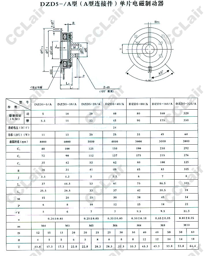 DZD5-5/A,DZD5-10/A,DZD5-20/A,DZD5-40/A,DZD5-80/A,DZD5-160/A,DZD5-320/A,單片電磁制動(dòng)器