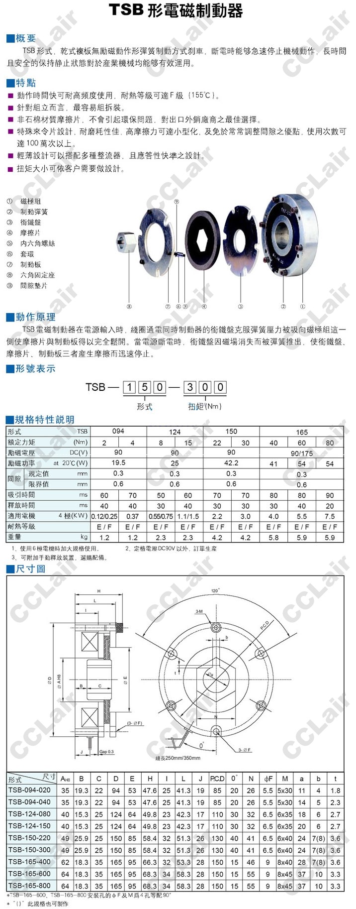 TSB-094,TSB-124,TSB-150,TSB-165,TSB-094-020,TSB-124-150,TSB-150-220,TSB-165-800,馬達(dá)失電制動(dòng)器