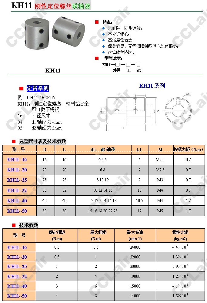 KH11-16,KH11-20,KH11-25,KH11-32,KH11-40,KH11-50,剛性定位螺絲聯(lián)軸器