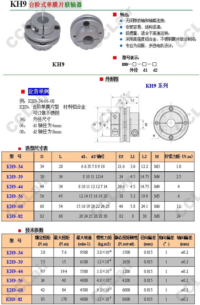 KH9-34,KH9-39,KH9-44,KH9-56,KH9-68,KH9-82,法蘭式單膜片聯(lián)軸器 |