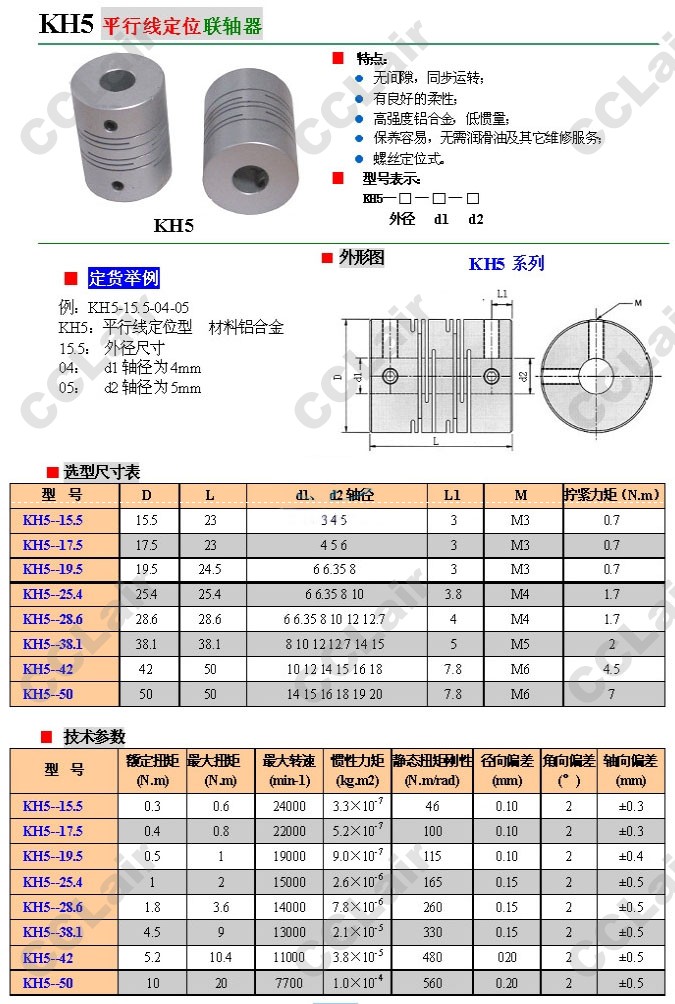 KH5-15.5,KH5-17.5,KH5-19.5,KH5-25.4,KH5-28.6,KH5-38.1,KH5-42,KH5-50,平行線(xiàn)定位聯(lián)軸器