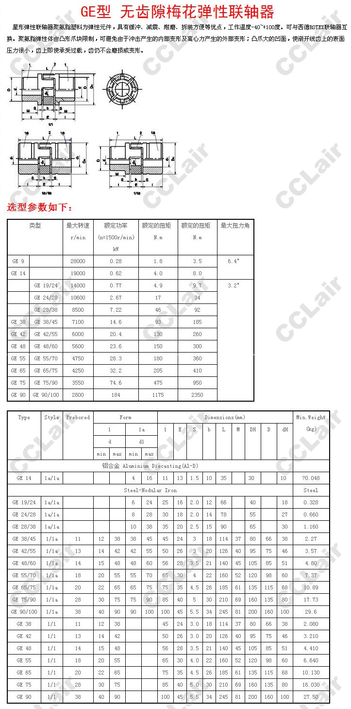 GE9,GE14,GE19/24,GE38,GE42,GE48,GE55,GE65,GE75,GE90,GE90/100,GE75/90,無(wú)齒隙梅花彈性聯(lián)軸器