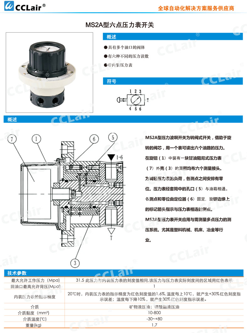 MS2A20/16,MS2A20/25,MS2A20/40,MS2A20/60,MS2A20/100,MS2A20/250,MS2A20/400,六點(diǎn)壓力表開關(guān)