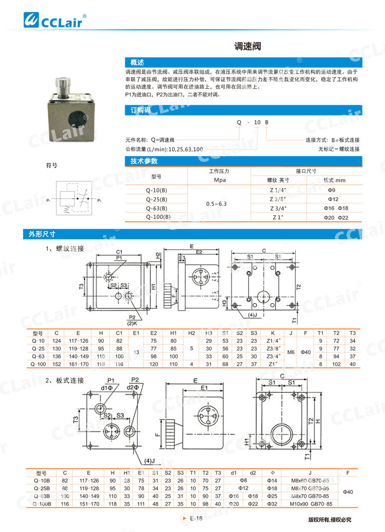Q-10,Q-25,Q-63,Q-100,Q-10B,Q-25B,Q-63B,Q-100B,調(diào)速閥