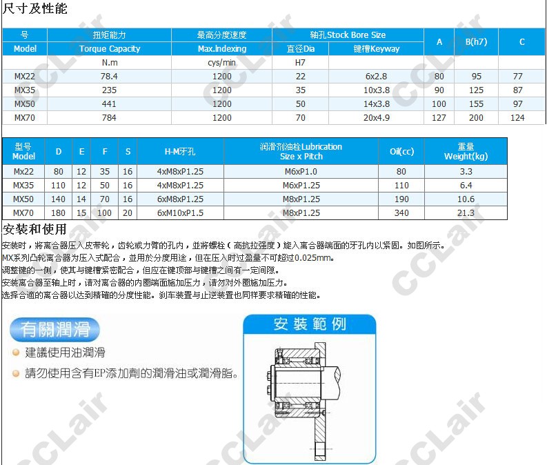 MX22,MX35,MX55,MX50,MX70,單向凸輪離合器