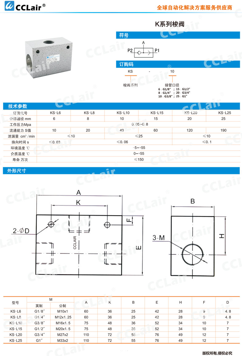 KS-L6,KS-L8,KS-L10,KS-L15,KS-L20,KS-L25,梭閥