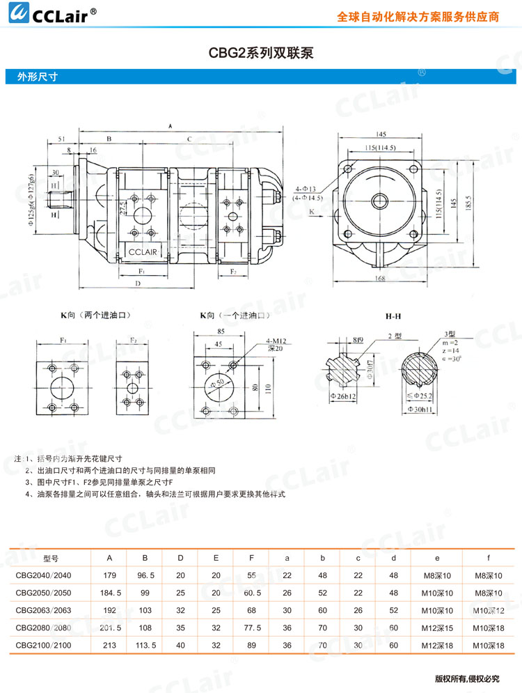 CBG2040/2040,CBG2050/2050,CBG2063/2063,CBG2080/2080,CBG2100/2100,雙聯(lián)齒輪泵