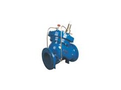 水力控制閥就是水壓控制的閥門,是由一個(gè)主閥及其附設(shè)的導(dǎo)管,導(dǎo)閥,針閥,球閥及壓力等組成。根據(jù)使用目的,功能及場(chǎng)所不同演變成水力控制閥,遙控浮球閥,減壓閥,流量控制閥,緩閉式止回閥,泄壓閥,水力電動(dòng)控制閥等。水力控制閥分為隔膜型或活塞型兩類,工作原理相同,都是以上游壓力差△P為動(dòng)力,使隔膜(活塞)液壓式差動(dòng)操作,完全由水力自動(dòng)調(diào)節(jié),從而使主閥閥盤完全開啟或關(guān)閉處于調(diào)節(jié)狀態(tài),當(dāng)進(jìn)入隔膜(活塞)上腔控制室內(nèi)壓力水被排到大氣和下游低區(qū)域時(shí),作用在閥盤底部或隔膜下方的壓力值大于上方壓力值時(shí),所以將閥盤推動(dòng)完全開啟開啟位置,當(dāng)進(jìn)入隔膜(活塞)上腔控制室內(nèi)壓力水不能排到大氣或下游低區(qū)域時(shí),作用在隔膜(活塞)上方壓力值大于下方壓力值,所以就會(huì)把主閥盤壓到完全關(guān)閉的位置,當(dāng)隔膜(活塞)上腔控制室壓力值處于入口壓力和出口壓力中間時(shí),主閥盤就處于調(diào)節(jié)狀態(tài),其調(diào)節(jié)位置取決與導(dǎo)管中的針閥和可調(diào)導(dǎo)閥聯(lián)合控制作用??烧{(diào)導(dǎo)閥可以通過下游出口壓力并隨它的變化開大或關(guān)小其自身的小閥口,從而改變隔膜(活塞)上腔室的壓力值,控制主閥閥盤調(diào)節(jié)位置。
