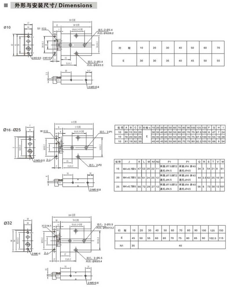 ECXSM10-10,ECXSM16-20,ECXSM20-25,ECXSM25-30,ECXSM10-50,ECXSM16-70,平行雙桿氣缸 |