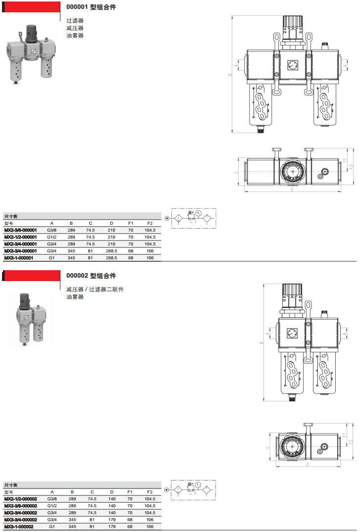 MX2-3/8-000001,MX3-1/2-000003,MX2-3/4-000010,MX3-1-000005,camozzi氣源處理裝置組合件