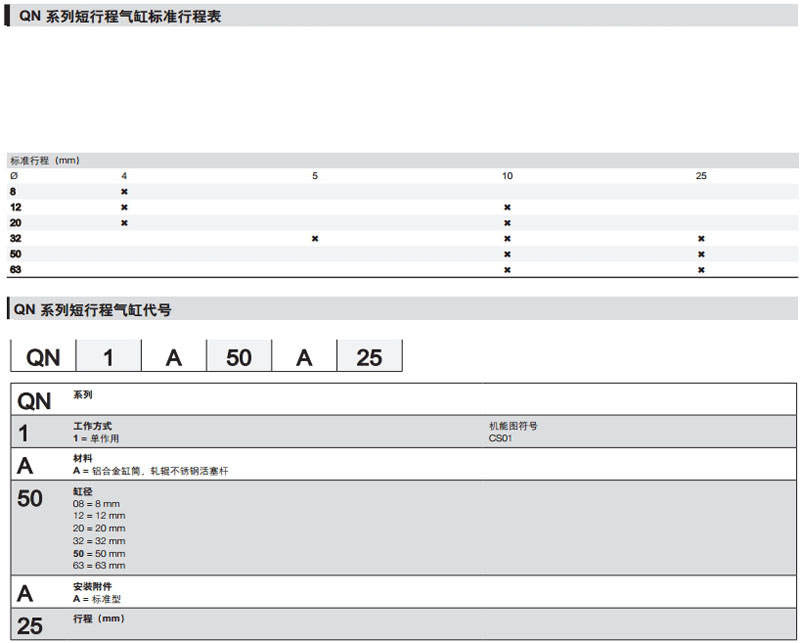 QN1A08A4,QN1A12A4,QN1A20A10,QN1A32A10,QN1A32A25