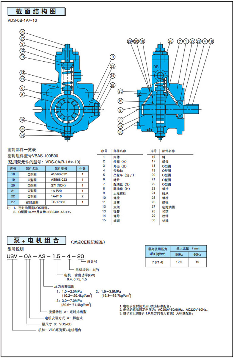 USV-0A-A1,USV-0A-A2,USV-0A-A3,USV-0A-A1-0.4-4-20,USV-0A-A3-0.75-4-20,NACHI泵+電機組合 |
