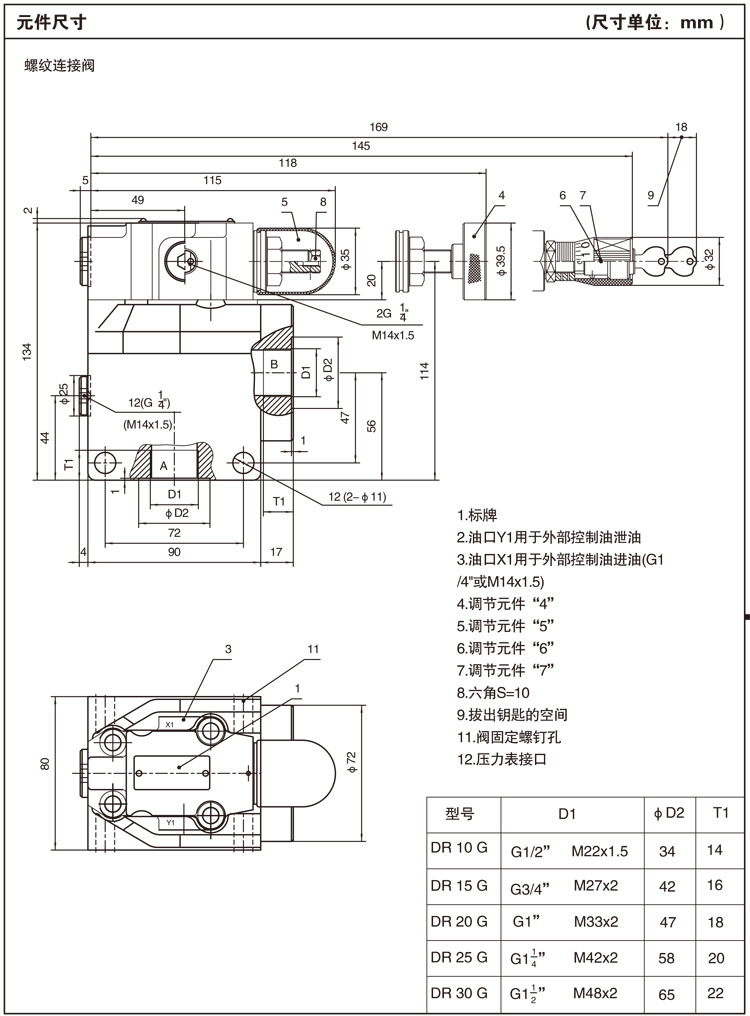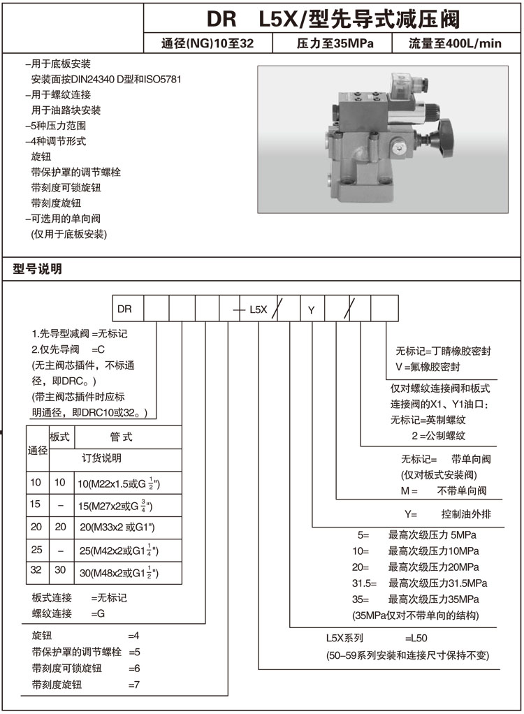 DR10,DR20,DR30,DR10G,DR15G,DR20G,DR25G,DR30G,DR104-L5X/5,先導(dǎo)式減壓閥 |