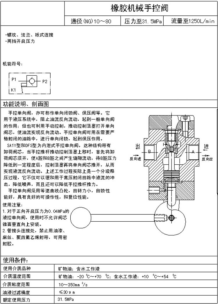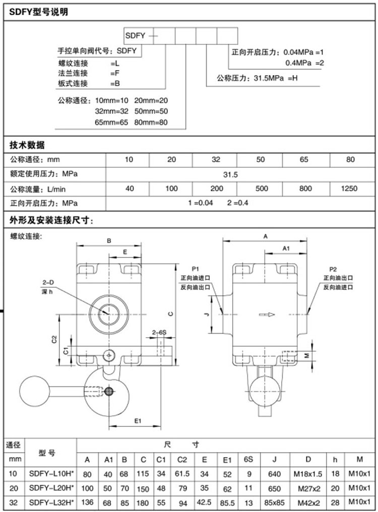 SDFY-L10H,SDFY-L20H,SDFY-L32H,SDFY-L50H,SDFY-L65H,SDFY-L80H,手控單向閥