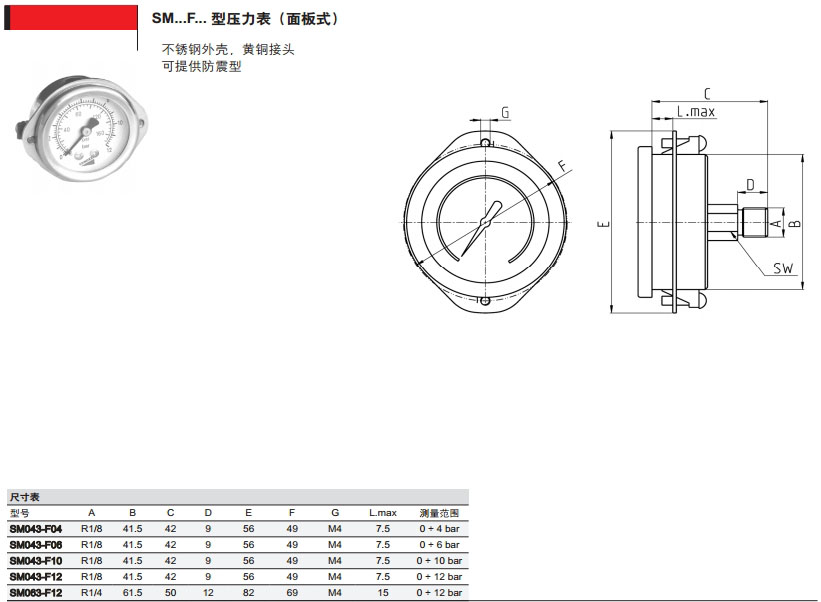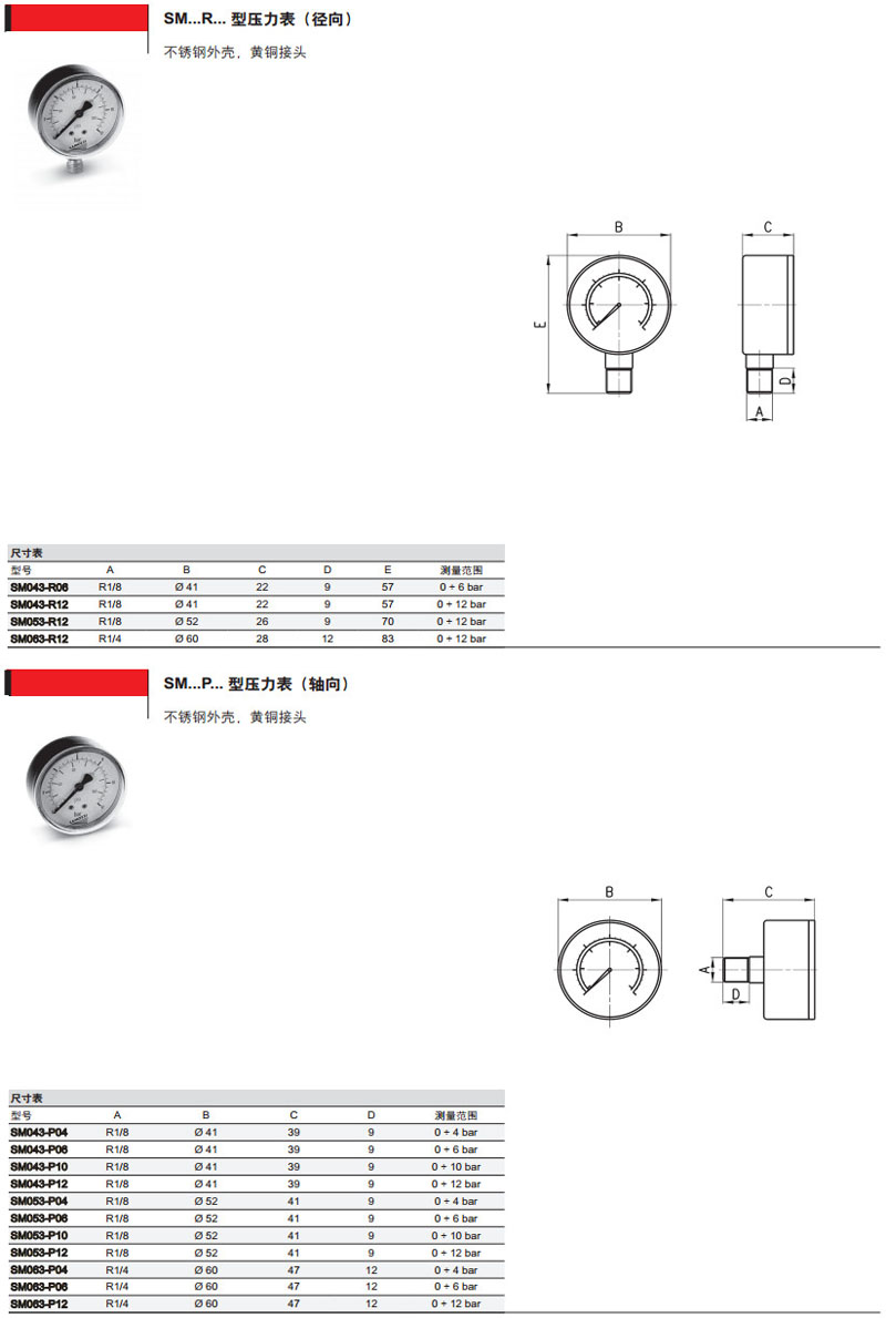 SM043-R08,SM043-P06,SM063-P12,SM043-F12,SM053-P06,camozzi壓力表 |