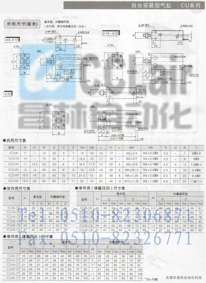 CDUK10-20D,CDUK10-25D,CDUK10-30D,自由安裝型氣缸