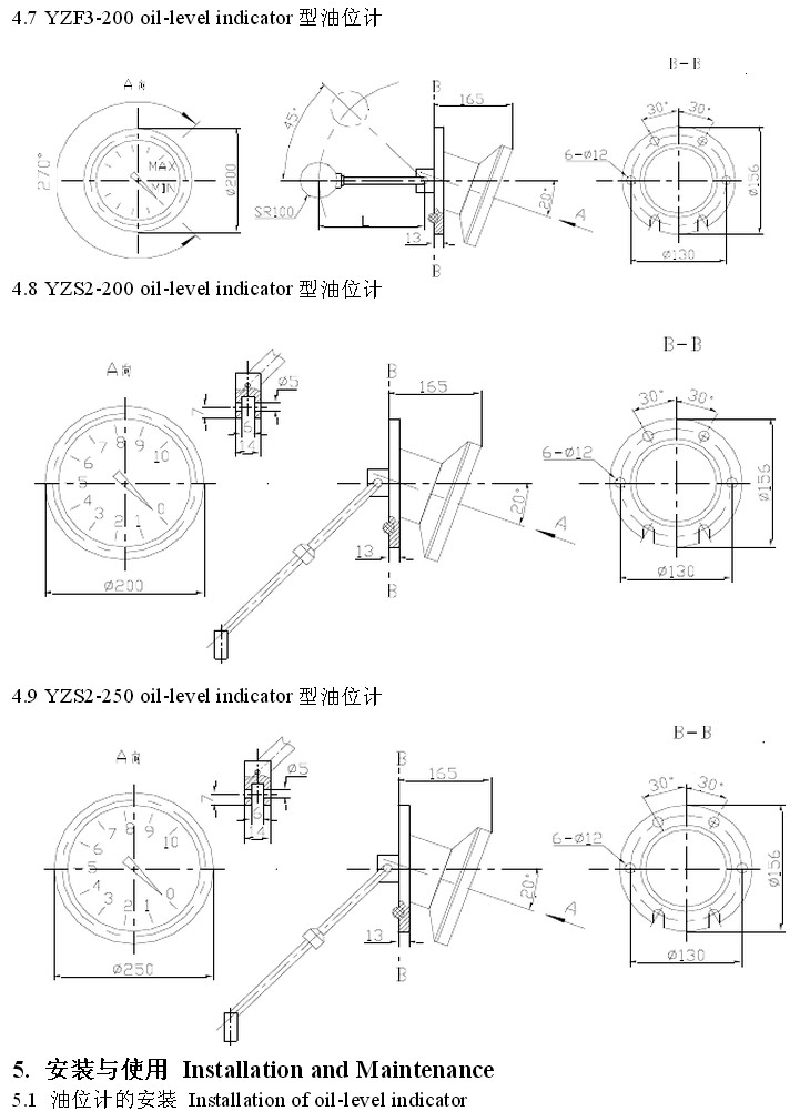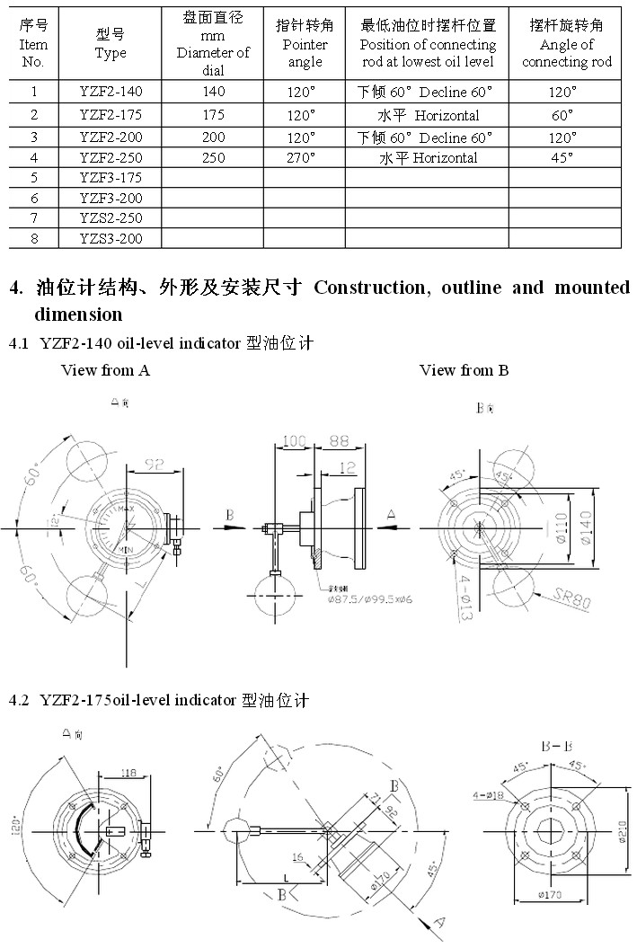 YZF2-140,YZF2-175,YZF2-200,YZF2-250,YZS3-250,YZS3-200,油位計(jì)