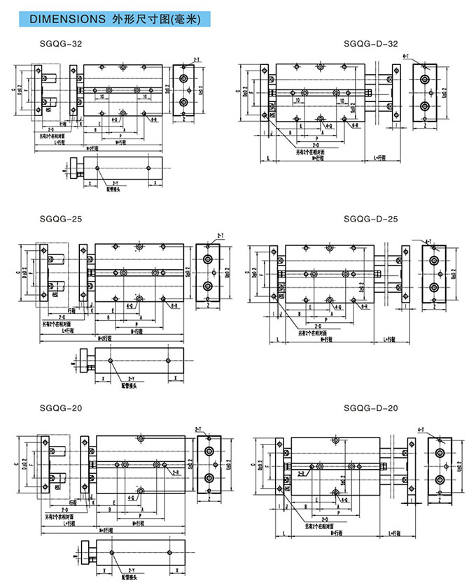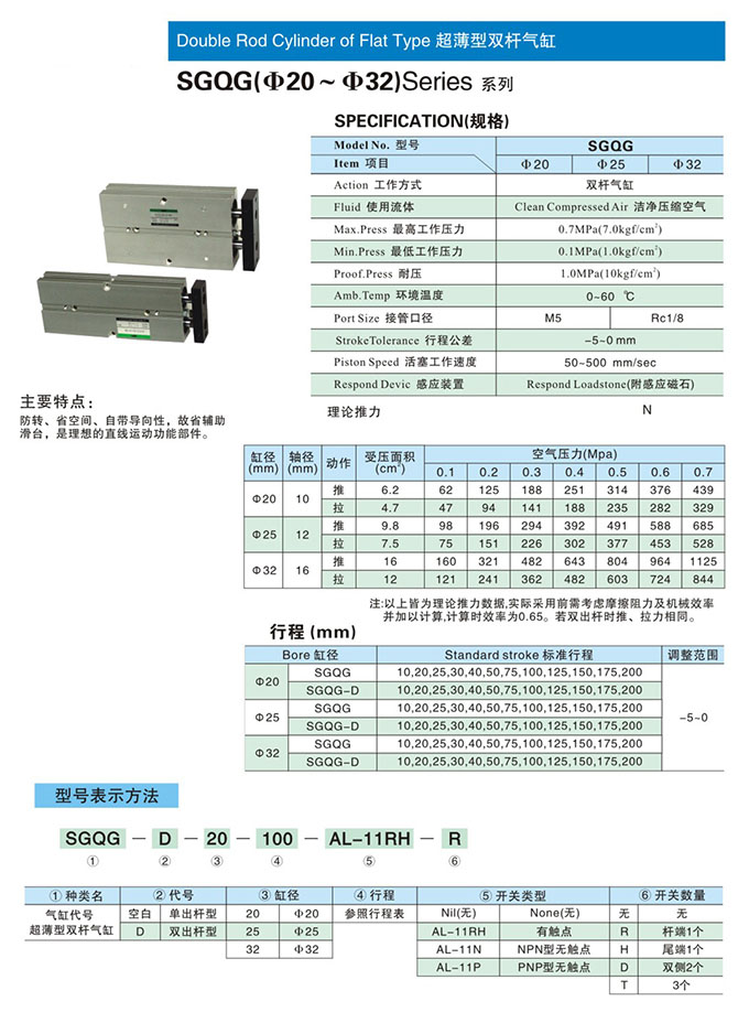 SGQG-20,SGQG-25,SGQG-32,SGQG-D-20,SGQG-D-25,SGQG-D-32,SGQG-20-10,超薄型雙桿氣缸