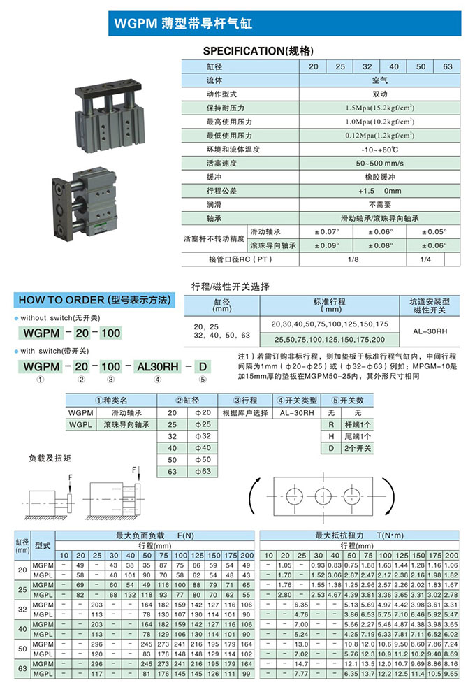 WGPM-20,WGPM-25,WGPM-32,WGPM-40,WGPM-50,WGPM-63,WGPL-20,WGPL-25,WGPL-32,WGPL-40,帶導(dǎo)桿氣缸 |