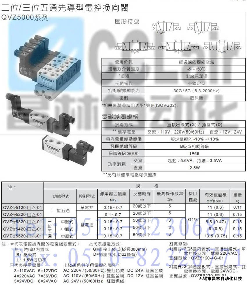 QVZB5520-3G-01,QVZB5520-3D-01,QVZB5520-4G-01,QVZB5520-4D-01,二位/三位五通電控換向閥