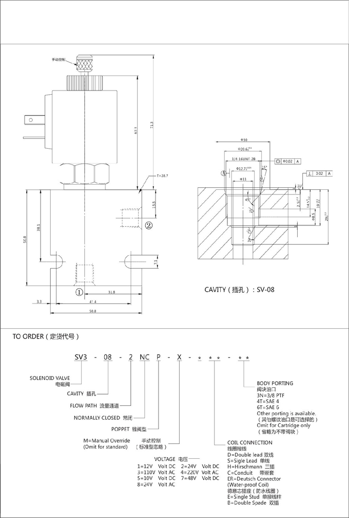 SV3-08-2NOP,二位二通