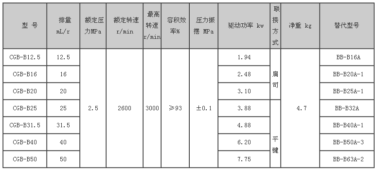 CGB-B12.5,CGB-B16,CGB-B20,CGB-B25,CGB-B31.5,CGB-B40,CGB-B50,擺線齒輪泵 |