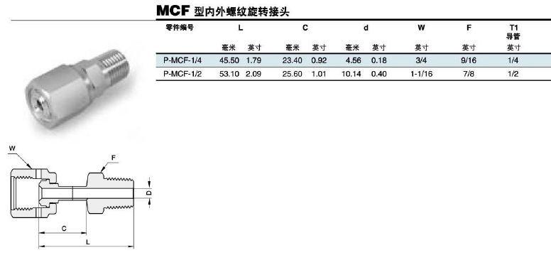 P-MCF-1/4,P-MCF-1/2,內(nèi)外螺紋旋轉(zhuǎn)接頭