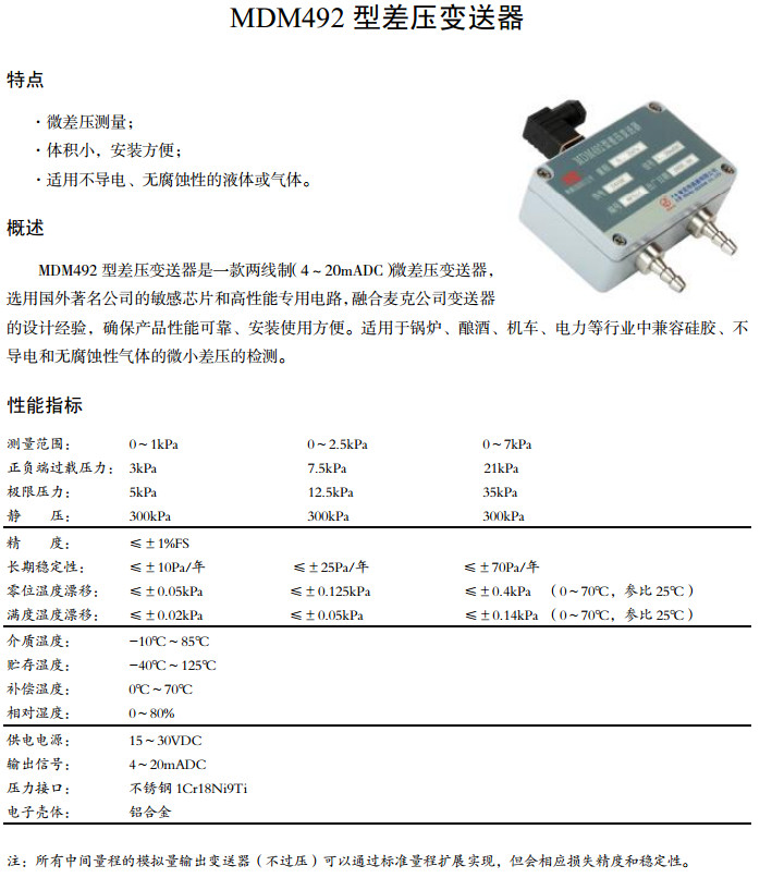 MDM492-0E,MDM492-1E,MDM492-2.5E,MDM492-7E,差壓變送器