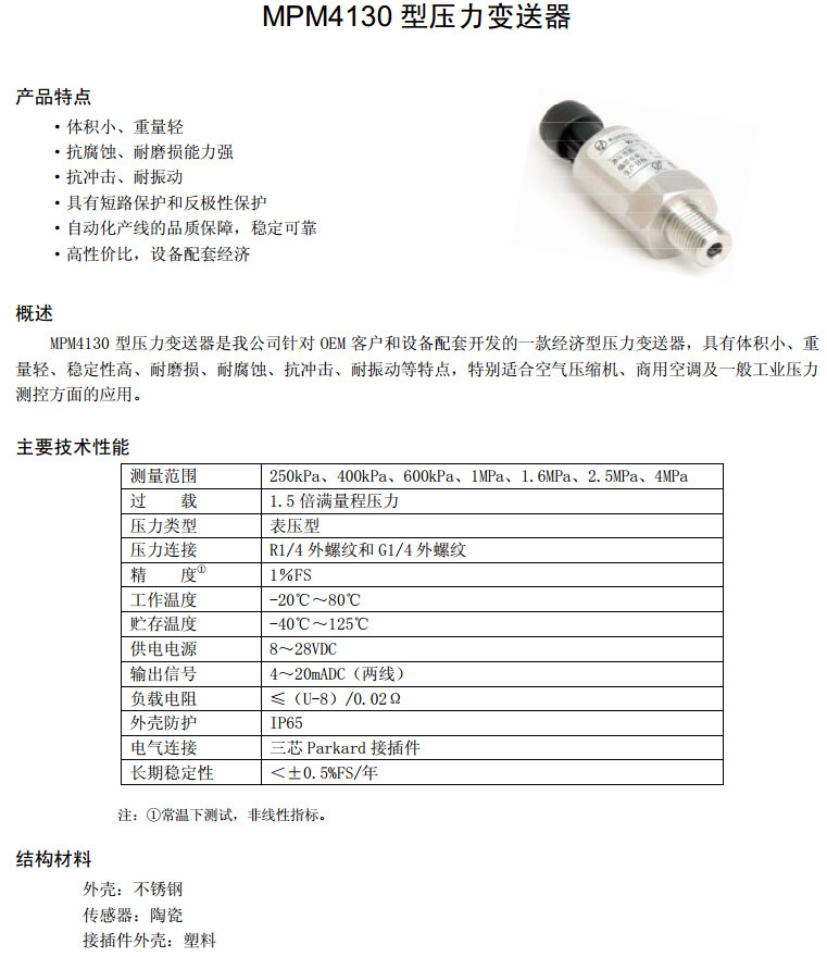 MPM4130-250E,MPM4130-400E,MPM4130-600E,MPM4130-1E,MPM4130-1.6E,壓力變送器 |
