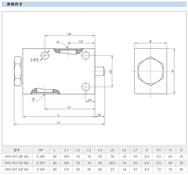 HYV-101 3/8" NC,HYV-121 1/2" NC,HYV-201 3/4" NC,