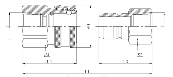 該系列快換接頭的特征在于球式鎖定機構和沒有閥機構。其快換接頭有各種金屬(黃銅,碳鋼,SS304不銹鋼)和密封材料,使它們可以與大多數(shù)油液合用。