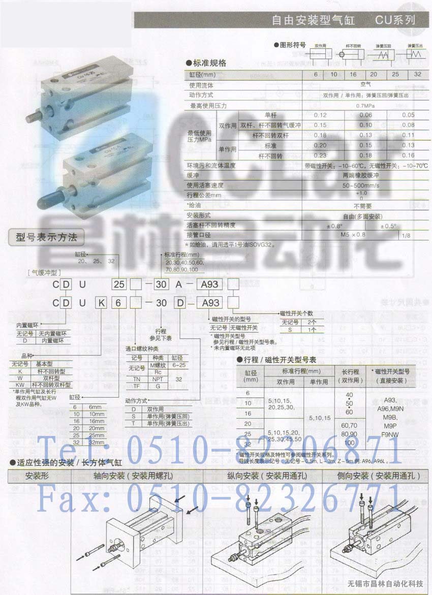 CU20-50A,CU20-60A,CU20-70A,自由安裝型氣缸