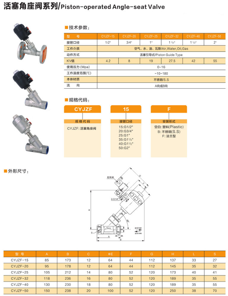 CYJZF-15,CYJZF-20,CYJZF-25,CYJZF-32,CYJZF-40,CYJZF-50,活塞角座閥 |