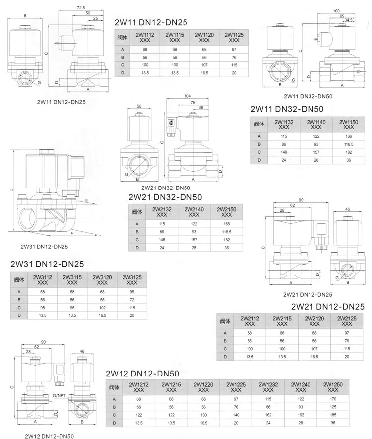 2W11,2W31,2W21,2W12,2W41,2W1112,2W3112,2W2112,2W1212,2W4112,直拉膜片式電磁閥