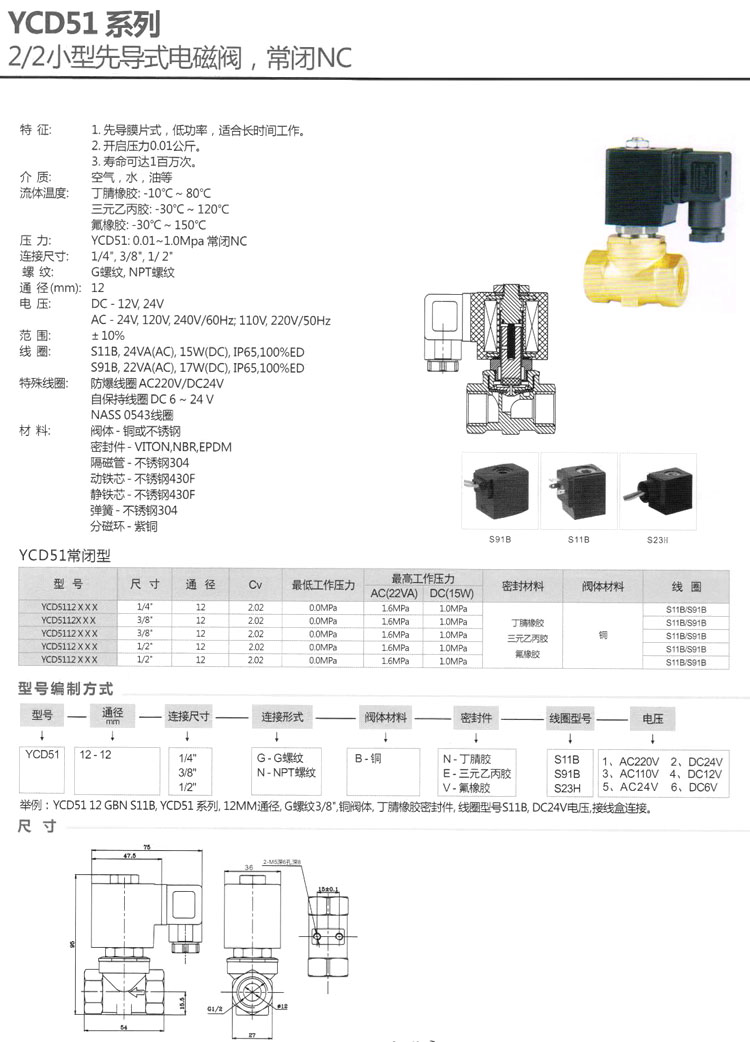 YCD5112,先導式電磁閥