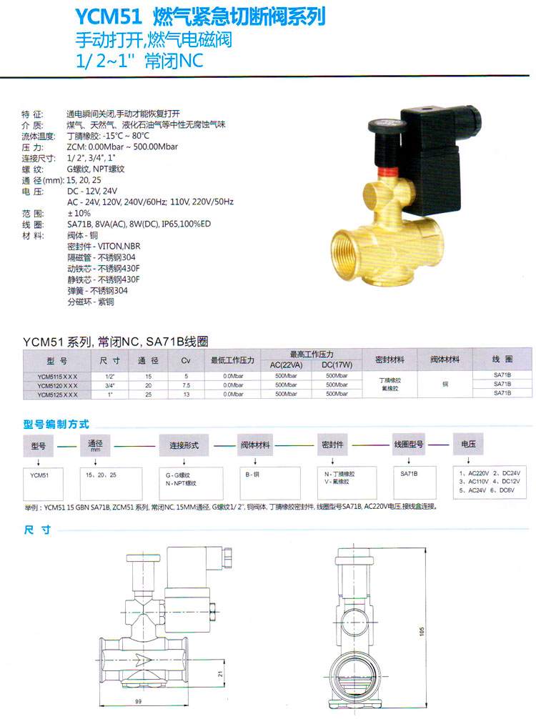 YCM5115,YCM5120,YCM5125,燃?xì)饩o急切斷閥