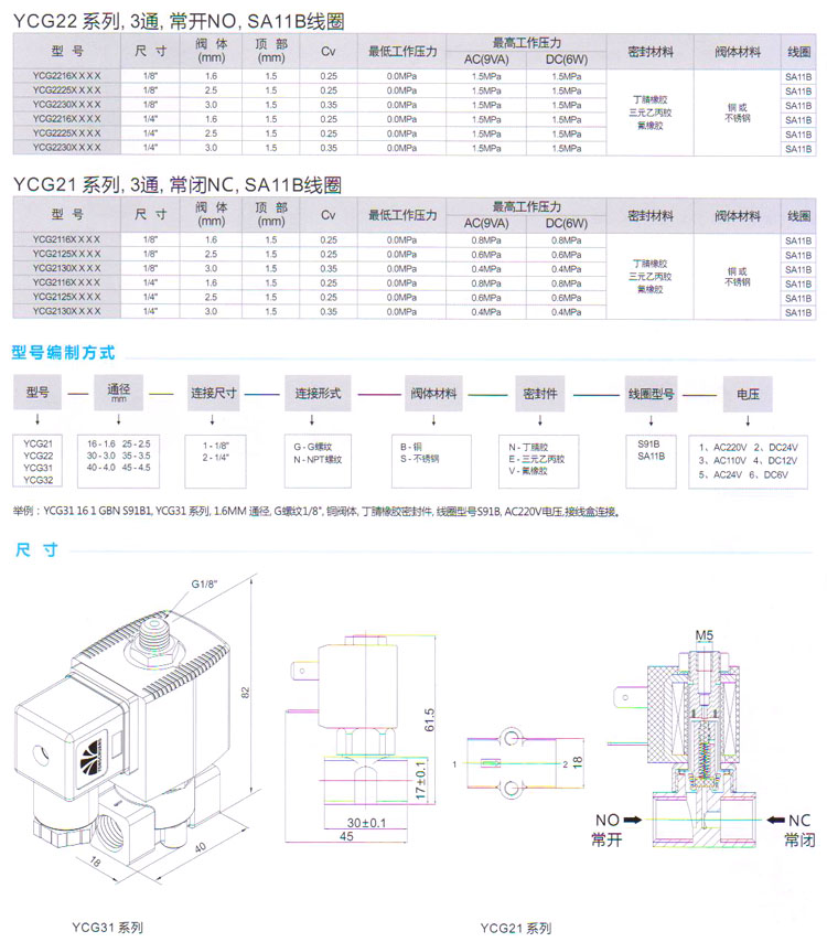 YCG21,YCG22,YCG31,YCG32,YCG2216,YCG2116,YCG2130,YCG2225,YCG3116,YCG3125,YCG3230,直動式電磁閥