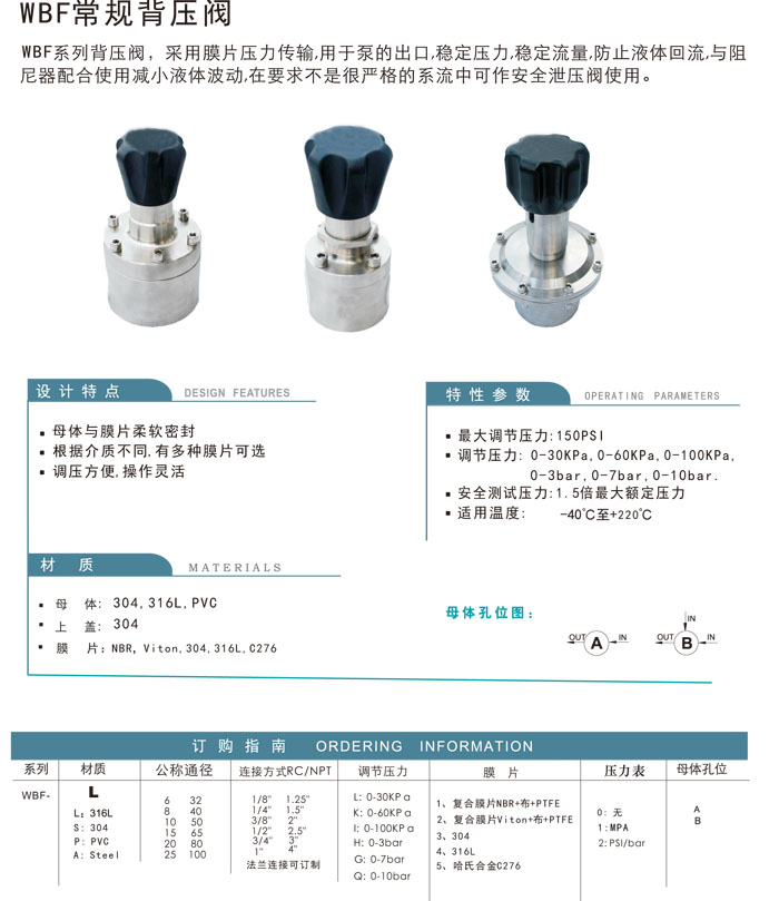 WBF-P6,WBF-L8,WBF-P10,WBF-P15,WBF-P20,WBF-P25,WBF-L32,WBF-P40,WBF-P50,WBF-P65,WBF-P80,WBF-P100,背壓閥 |