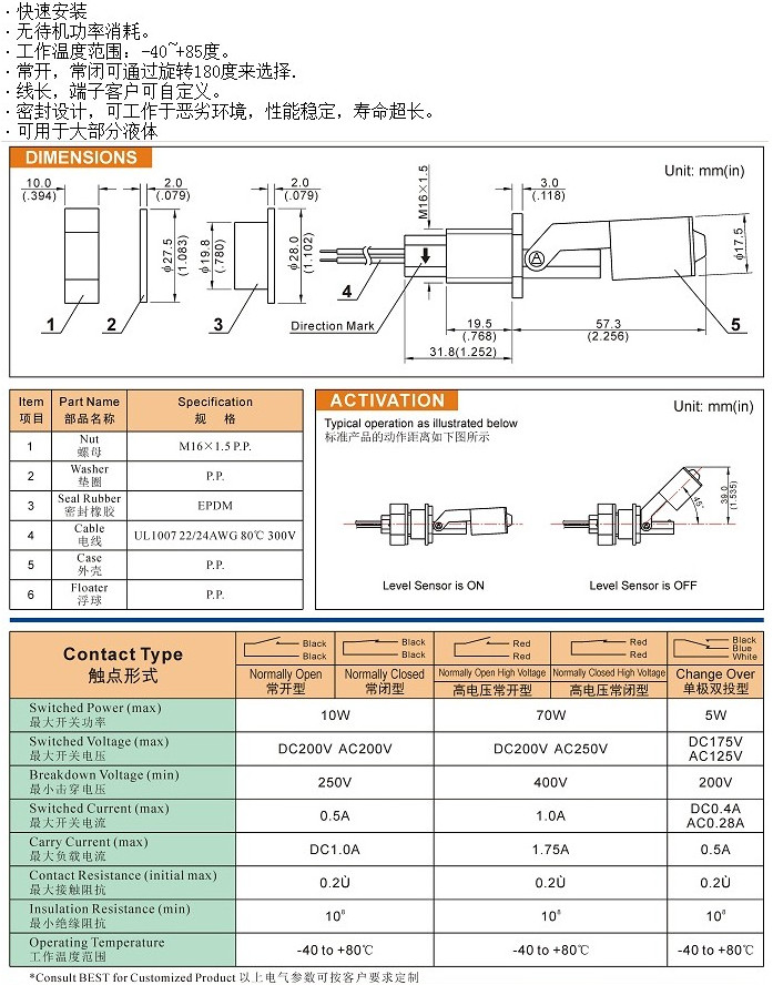 BF-80SL,液位開關(guān)