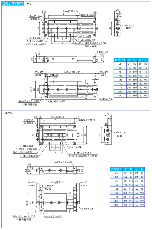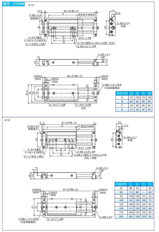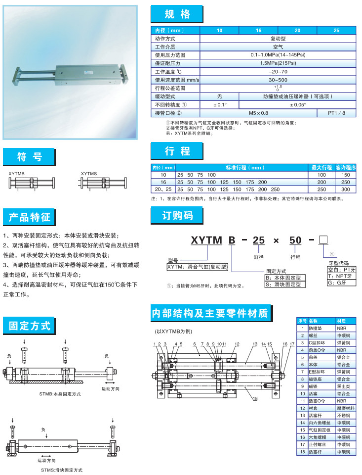 XYTMB-10*25,XYTMB-20*50,XYTMS-16*100,XYTMS-25*125,XYTMB-25*75,滑臺(tái)氣缸