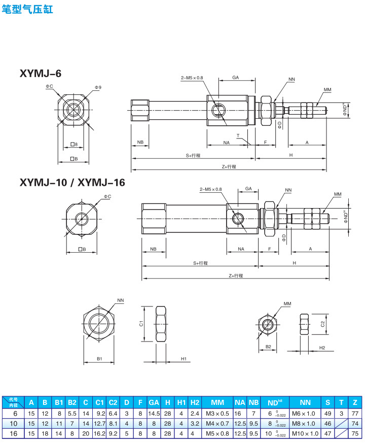 XYMJ-11-6-15M,XYMJ-13,XYMJ-15,XYMJ-21-6-30M,XYMJ-27,筆型氣缸