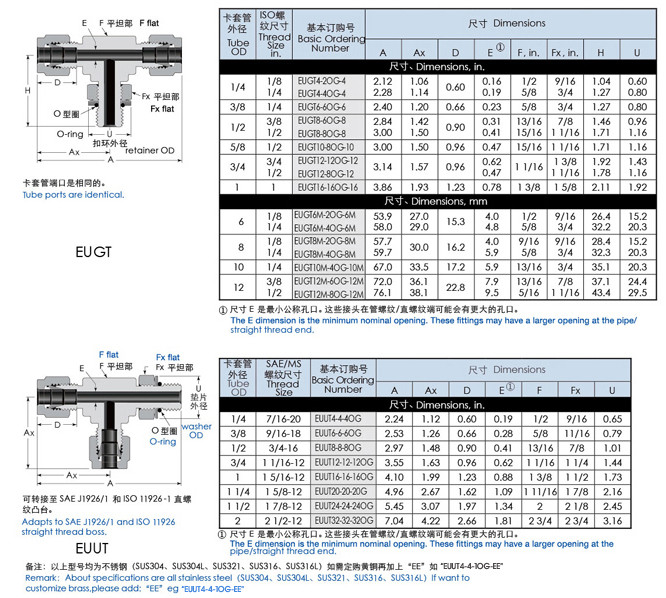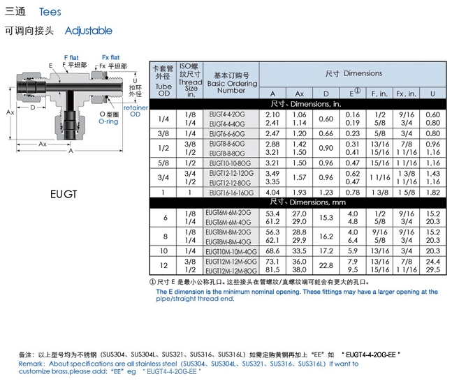 EUGT4,EUGT6,EUGT8,EUGT10,EUGT12,EUUT4,EUUT6,EUUT8,EUUT12,EUUT24,三通可調向卡套接頭 |