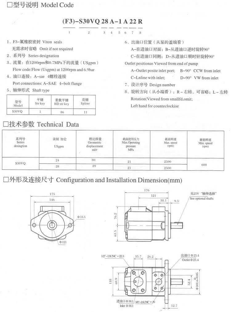 S30VQ28A-1A22R,S30VQ24A-1B22R,S30VQ28A-86D22R,S30VQ28A-11D22L,葉片泵